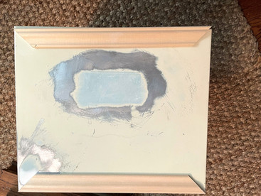The wooden cabinets I had found online had molding around the edges. In an attempt to replicate the look, I asked my husband to cut some trim pieces that we could attach to the front of each drawer. As soon as I placed the pieces on the drawer, I knew we were heading in the right direction. To adhere the trim, we used a liquid glue (products used will be listed at the end of the post) and then filled in the corners with spackle, leaving it to dry overnight.