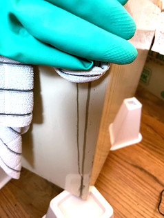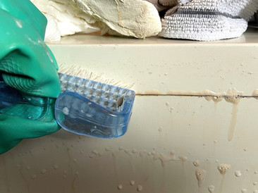 Next, I dealt with the rust stains and dark substance; although it required some effort, I was able to remove those stains as well.